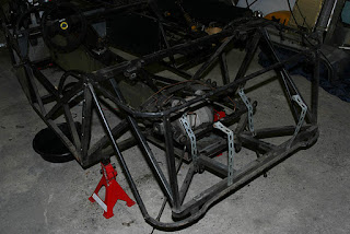 The rearside of the chassis almost empty now (except for the diff and brake lines).